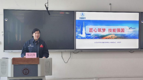 韩利萍介绍了她从一名铣工成长为技术创新能手的经历,她告诉现场的同学们,在任何一个平凡的岗位上,只要兢兢业业努力、钻研,践行工匠精神,不断精进自己的工作能力,都可以收获进步和成长。她讲到,对待工作,一是要勤学苦练,要在一次次磨练中铸就成长之路;二是在强烈求知欲的驱动下努力学习行业知识,钻研技术难题,勇于创新,用一项项专利推进科技进步;三是要精益求精,在航天事业中没有99分的零件,只有100分的达标零件和0分的不达标零件,工作容不得任何差错;四是要甘为人梯,毫厘不留的培育高技能人才,她成长的过程正是她的师傅给予了无限的关怀与引导,每一位青年人的成长都是站在前人的肩膀上不断成长成才。
