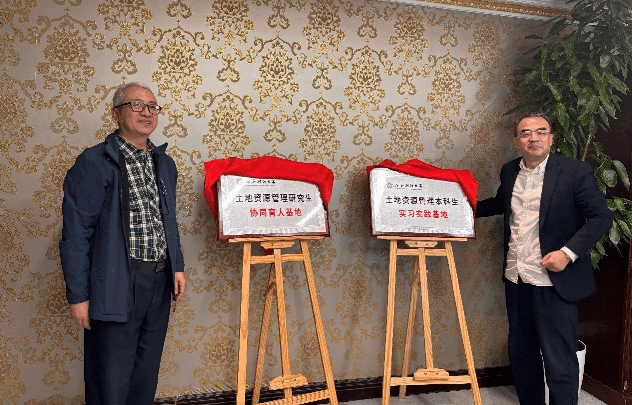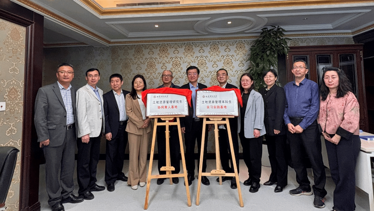 党委书记郜军和公司董事长李俊山共同为土地资源管理本科生实习实践基地、研究生协同育人基地揭牌。