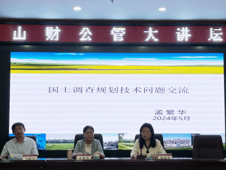 2024年5月20日下午,山财公管大讲坛第11讲在博学楼二层会议室举行。此次活动由土地资源管理系承办,特别邀请山西省土地学会会长孟繁华研究员为土地资源管理专业师生做“国土调查规划技术问题”主题的学术报告。报告会由我院院长郭淑芬、王瑞雪教授主持。