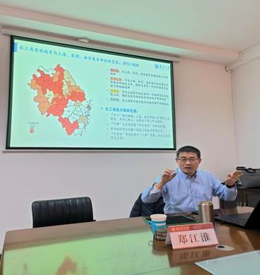 讲授过程中,郑教授对比了长三角地区与山东省的技术增长情况和技术发展现状,指出后发地区由于吸收技术外溢,使得技术多样化程度上升,而发达地区技术呈现“专业化”,越来越向少数优势领域集中。进一步观察各技术类型行业的城市技术邻近性,以及城市技术邻近性与城市间技术互补性,得出山东省内城市技术邻近度较低,难以形成优势互补,且与其他省份、核心城市之间技术联系不强,知识溢出与技术分工受限;而长三角各城市技术邻近网络在分化中聚合,城市群“中心化”加强,带动其他城市,推动长三角产业集群逐步演化为技术集群。郑教授根据相关研究结论,给出打造创新中心、与其他地区创新中心最小差异化、加强国家间技术互补等政策启示。