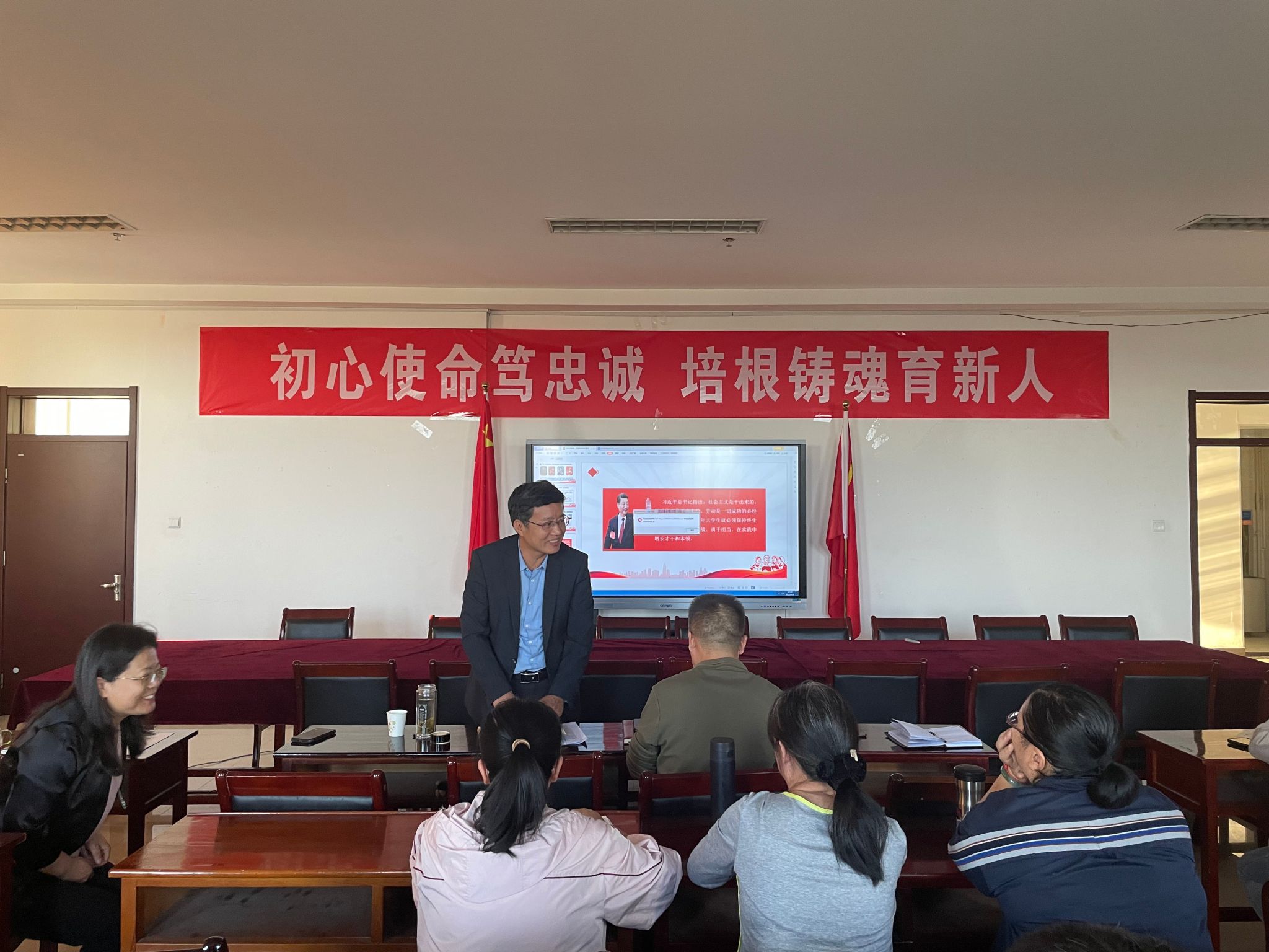 劳动与社会保障教研室主任罗俊峰老师首先讲解了《劳动教育》课程理论部分的教学大纲。随后,劳动与社会保障教研室范婧老师代表备课组展示了《大学生如何树立正确的劳动观》教学板块的授课过程。教学大纲逻辑清晰、内容完整。授课内容自然流畅、材料详实,凸显了思政元素。两位老师的展示充分显示了近期《劳动教育》集体备课取得的积极成效,这其中凝聚了劳动与社会保障教研室全体老师的辛劳与智慧。