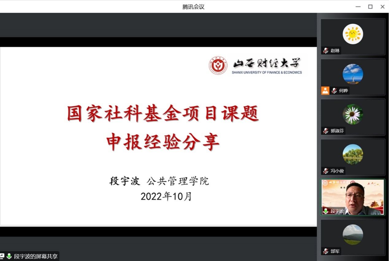 2022年11月1日下午,必威西汉姆官网平台通过“尚公青年沙龙”学术平台举办第三场国家级科研项目申报经验交流会,学院副院长、2022年国家社科基金项目主持人段宇波副教授做了《国家社科基金项目课题申报经验分享》的报告,副院长冯小俊主持了交流会,100余名师生在线参加了经验交流会。