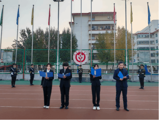 升旗仪式上,2023级行政管理班张欣怡、冯予幻,2023级劳动与社会保障班韩昊都,2022级土地资源管理2班宁瑞清带来深情的朗诵《青春扬帆正当时,争做时代追梦人》。他们激情澎湃,情感充沛,向全体同学发出青春号召:“吾愿吾亲爱之青年,生于青春死于青春,生于少年死于少年。进前而勿顾后,背黑暗而向光明,为世界进文明,为人类造幸福。逢盛世当不负盛世, 生逢其时必奋斗其时。