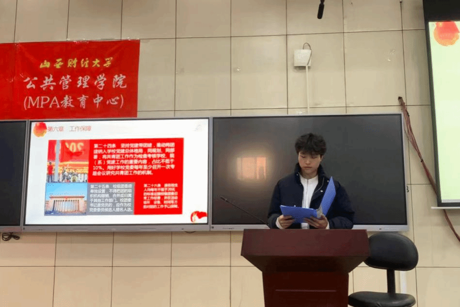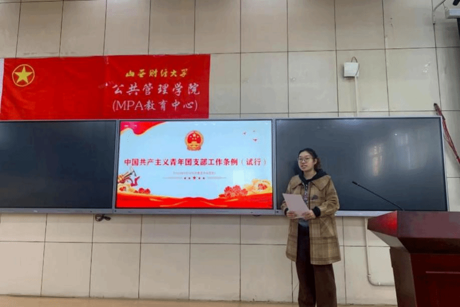 各级团学骨干作深入学习交流:2021土地资源管理1班詹舒雅领学了《中国共产主义青年团支部工作条例(试行)》,对团的组织体系建设、团员队伍建设、团干部队伍建设、青年人才队伍建设、团的纪律建设等内容作全面阐述,号召大家要认真学习领会习近平新时代中国特色社会主义思想,提高对党的基本理论、基本路线、基本方略的领悟力,做有理想、敢担当、 能吃苦、肯奋斗的新时代好青年;2022行政管理班梁浩田介绍了《中华全国学生联合会章程》,再次明确中华全国学生联合会章程行动纲领及其基本任务,动员大家要坚持党的领导,争做中国特色社会主义事业要求的合格人才,筑牢对党忠诚、坚定理想信念、发扬斗争精神、勇于挺膺担当,充分激发新时代山财青年的青春激情;2022行政管理研究生班张子瑞同学根据《西汉姆联深化学生会(研究生会)改革的实施意见》,提出要加快落实学校党委的领导机制和共青团的具体指导责任,加强校级学生会与学院学生会的工作联动,注重自身素养能力提升,建立规范化理论学习制度,加强学生会(研究生会)成员政治学习的系统性、思辨性、针对性。