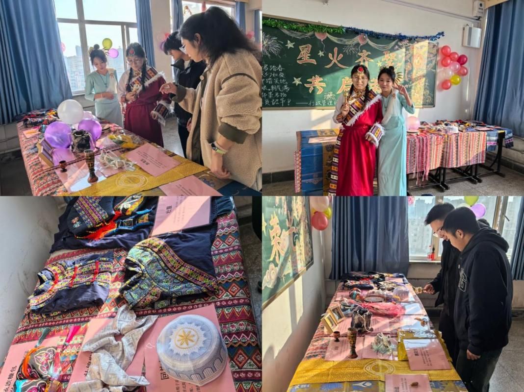 活动精心设计了“游艺宫大闯关”、“班级小游戏”、“党团知识问答”、“民族文化展示”四大板块,集趣味性、教育性、文化性于一体。在“游艺宫大闯关”中,同学们自由组队,依次参与了肢体传声筒、盲人方阵、接力画、谁是卧底等团队游戏,在协作中深化信任、促进跨专业交流。“班级小游戏”区域设置了抢水瓶、投壶、夹豆子、萝卜蹲等轻松项目,同学们在欢声笑语中释放压力、增进情感。“党团知识问答”环节将理论学习融入活动,以生动形式引导同学们夯实思想根基、提升思想素养。“民族文化展示”区尤为引人注目,少数民族同学身着民族服饰,热情讲解风俗文化,配合丰富的手工艺品与图文资料,吸引众多同学驻足交流,在沉浸式体验中深化对中华民族多元一体文化的认同。