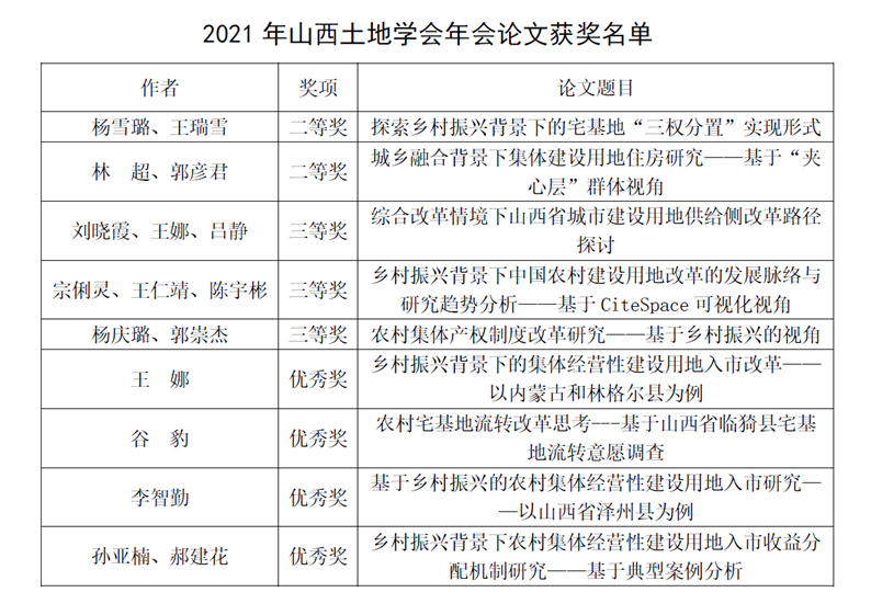 土地资源管理系师生参加2021年山西省土地学会年会并获奖