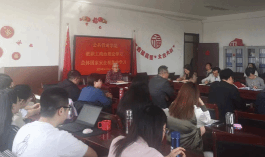为牢固树立总体国家安全观,进一步增强全民国家安全意识,4月16日,必威西汉姆官网平台在教职工例会上组织全体教职工召开总体国家安全观专题集中学习会,学院党委书记郜军领学,院长郭淑芬主持,全体教职工参加会议。