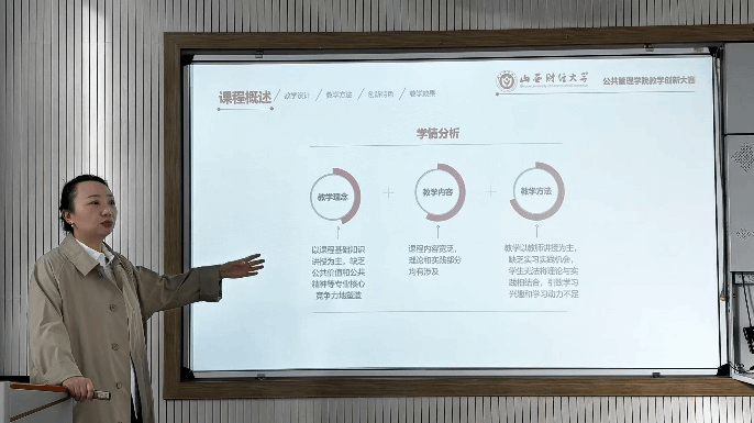 学院教学副院长刘海燕在总结中指出,各参赛教师教学内容重点突出,教学方法科学有效,富有感染力,充分展示了我院教师在教学理念、教学内容、教学方法及课程思政等方面的创新与实践成果。教创赛的目的是以赛促教、以赛促创、以赛促学,持续深化本科教育教学改革,切实提高学校课堂教学质量和人才培养质量。希望参赛教师通过比赛磨砺自己、反思自己、提升自己,积极投入课堂教学改革与创新实践,提高教学信息化技能,推进学校课堂革命。
